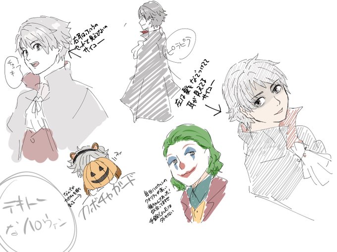 殴り描いた。不健康そうな健康優良児な顔色と良かったし、カボチャがお気に召してる?はやまちも可愛かったし、妙にハイクオリティなジョーカー福ちゃんも良かった2020のハロウィン🎃