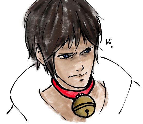 ナマズオの鈴をみせてくれたときのじょしゅあの顔かきました