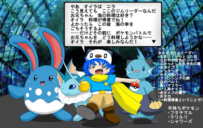 いただいたイメージから水タイプジムリーダーということでこんな感じになりました!たくさんのリプありがとうございました…!