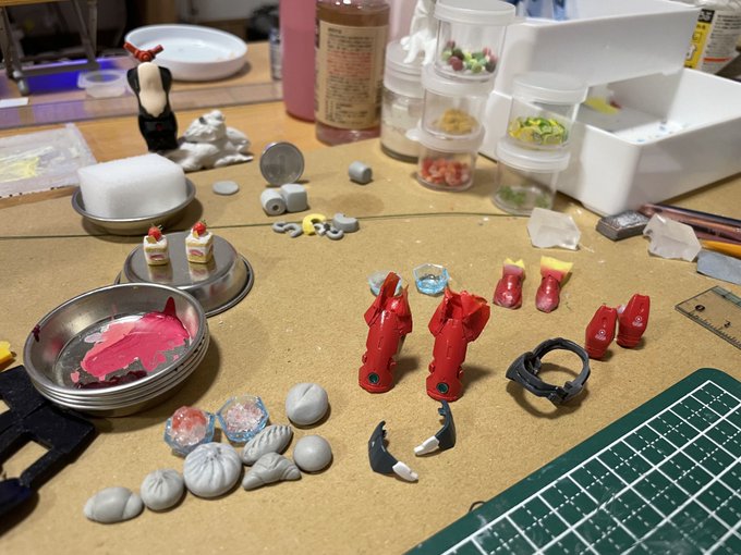 #8月になったのでフォロワーさんに自己紹介しようぜ プラモ関連のフォロワーさんが増えたので、このへんで自己紹介をば。 昔ゲームで使ってた自キャラを作るべく、6月からアルカ=カルティーを組み立て始めました。完成まであと少し!出来上がった子用にミニチュアフード作りにも手を出してます。
