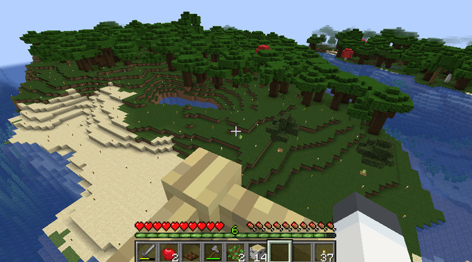 昨日時点のニリ鯖 スポーン地点がクソほど森 灯台兼仮の寝床としてニリン塔建設 ちまちま森切り開く