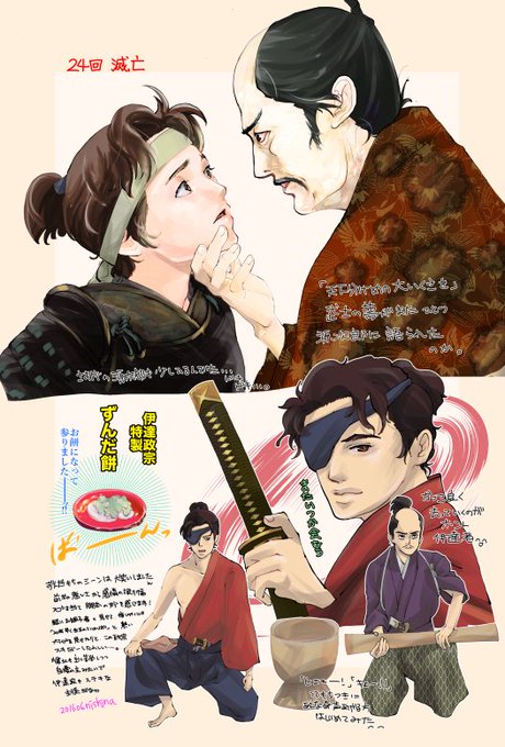 感想絵再掲です。ハセ政宗さまこの回でものすごい好きになりました。面白くて熱くて哀しみがあって、そして物語終盤では男気をぐいぐいみせるなど魅力的すぎてずるい…すてき。 #丸絵 #追丸24話