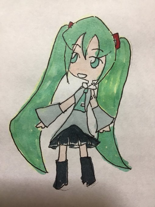 白黒とカラーの初音さん 初音ミクの髪が青だと思ってたら、緑だった。 彼女の歌声は最強で最高です♪ #初音ミク #イラスト