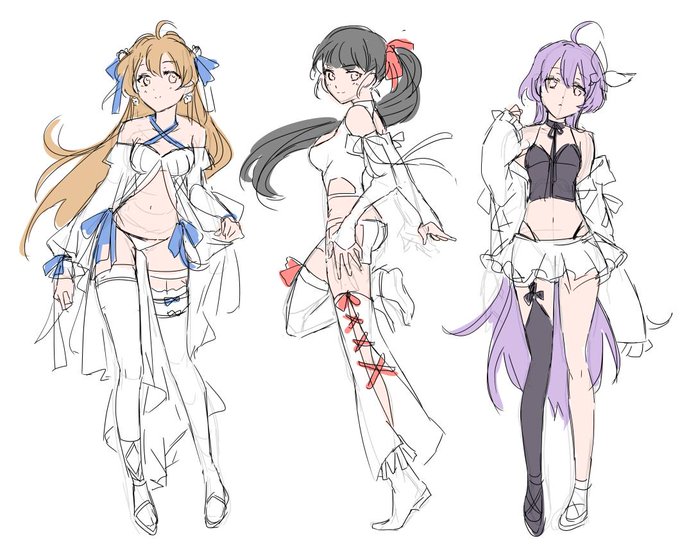 本用にリボンをあしらったデザインの女の子考え中~😎まだいっぱい描くんだけど水色の子が個人的に好み✨可愛くなりそうじゃない❓