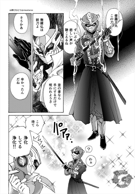 10話で元締が向こう側へ行ってしまわれたので召喚しようとする絵と、元締とカリバーさんが中身チェンジするりばーしゅシリーズ
