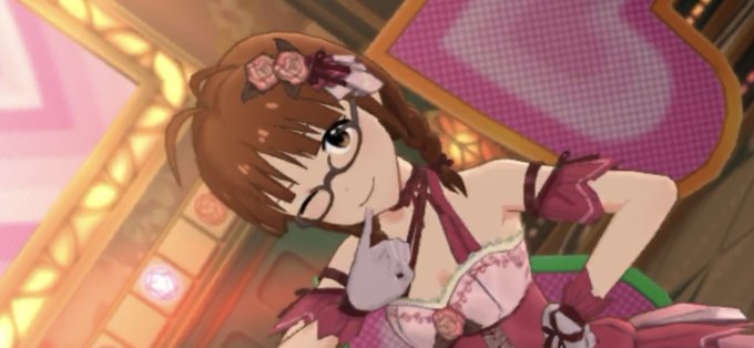 ミリシタの律子のおさげもこれくらい長かったらなぁ… とちょっと思う(^^;) 四コマだとこの長さだから。 今でも十分可愛いんだけどね!