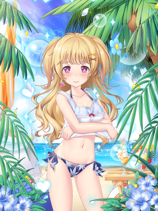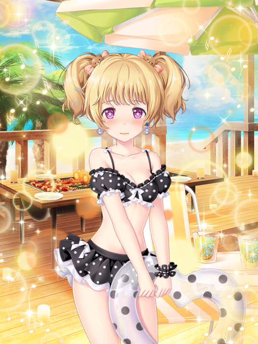 いつもオスありです〜💛水着衣装ほんとないんでオスありがたし(T_T)海入る気満々の元気っ子🍚ちゃんかわいい☺️ #ニジカノ