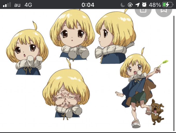 @_someko_ ちなみにスイカ外した時の素顔&その後すぐ見えなくて顔ぎゅーって寄せちゃう顔(´・ω・`) 原因は原始化した世界でメガネという文明を無くして、視力改善の術を失ってたから🥺 その後は主人公にメガネ作ってもらって、スイカにはめて被ってる笑
