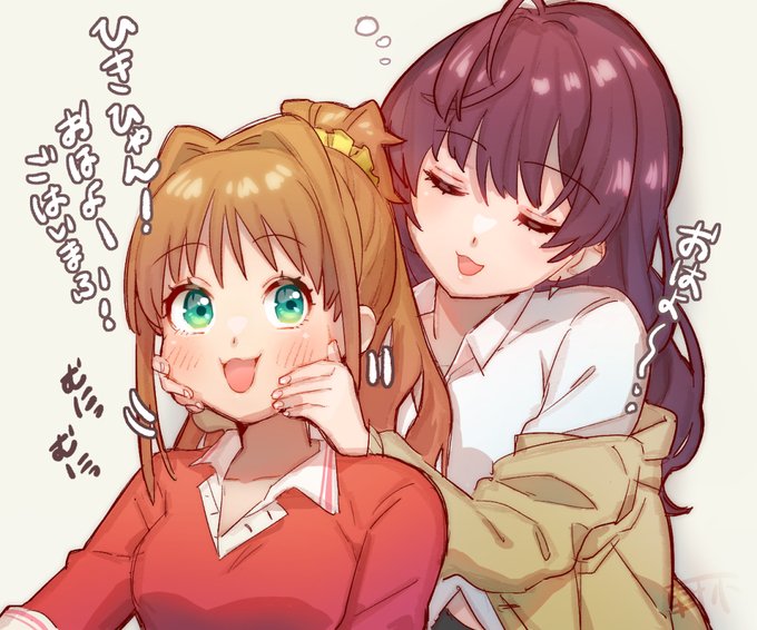 寝起きに茜ちゃんに会って挨拶がてらにほっぺを触る志希ちゃん