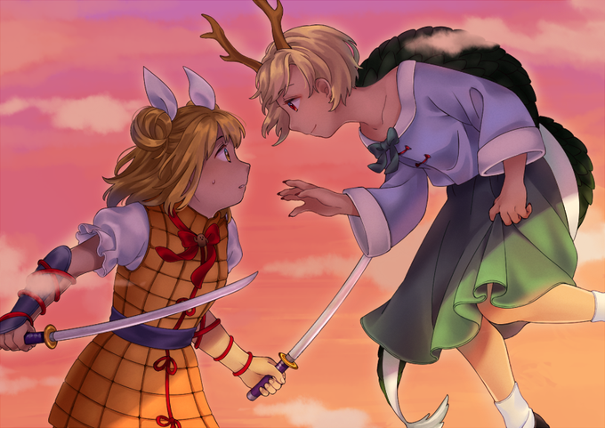 for my touhou secret santa this year I drew mayumi & yachie! full view on pixiv: https://t.co/rIO1flC0pE