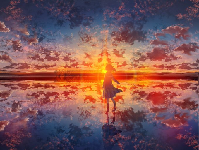 夕焼け水鏡