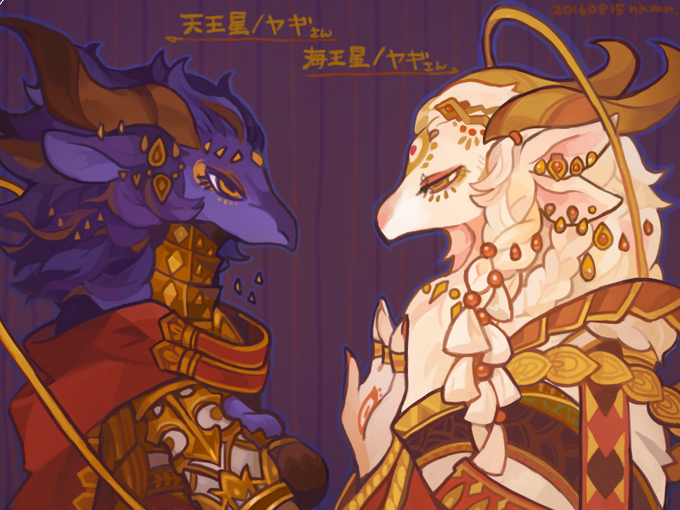 サビアンと、初期うおさん(2016)、残りの山羊と、最近のうしうおイメージ(2022)