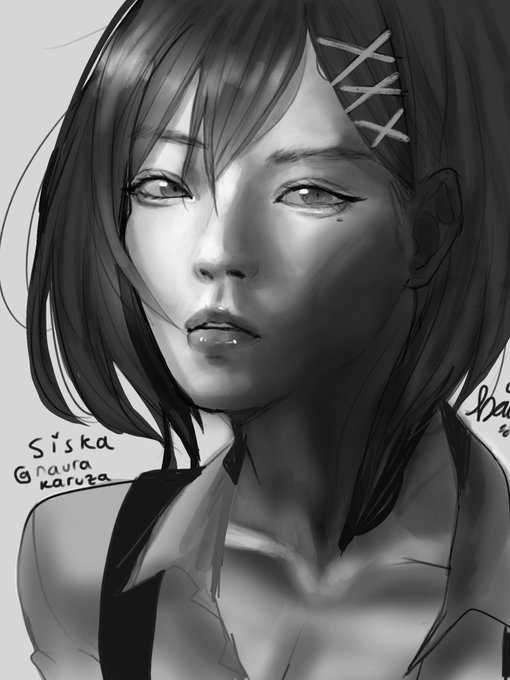 #ArtistOfIndonesia ver. grayscale semirealistic painting owo