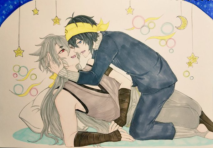 うちわのイラスト完成やったね✌️✨もうポーズがどうしていいか分からんかった← ほぼ色塗りしてない(安定)けど!!も!!! 松井と豊前〜🙌ここ推しで行きます← #生茶のお絵描き