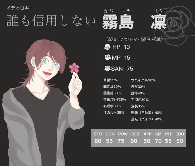 新クトゥルフ カタシロ KP/椎さん(@shii_122 ) このキャラで通過しました〜! 中々に楽しかったです。