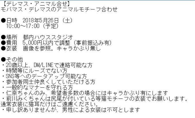 【参加者募集】デレマス・モバマスのアニマルモチーフ衣装で合せやります!