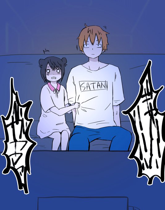 #おにロリお絵描き60分1本勝負 描き始め遅れで遅刻です! お題「映画」 家でちょっと怖いやつ観てる(^O^)