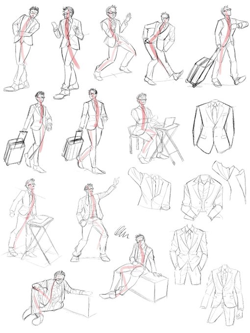 #みになま #朝ドロ #じぇすどろパーティ #GESDRAWParty スーツが描けなくて歯痒かったので、追加で静止画をお借りして練習しました。スーツ難しいわ〜〜