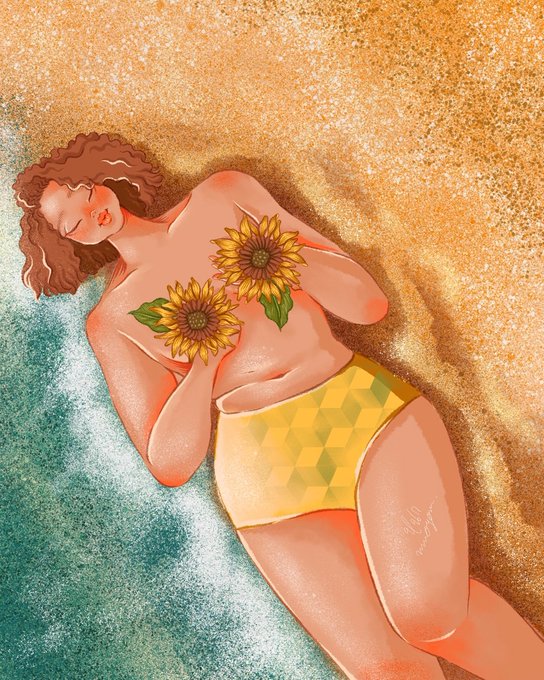 #ทานตะวัน #sunflowergirldiary #drawing #sea #watercolor #painting #girl #sunset #sunflower #flower #artoftheday #artwork #illustration #fanart #hobby #nnnogonnn