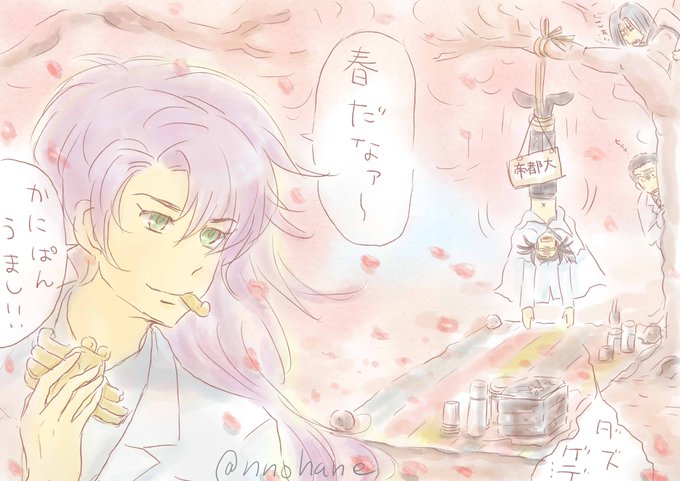 百樹先生とカニと帝都大の春のかにぱん祭り絵🌸🦀 これ描いたのいつだろ~?発掘してきた!!