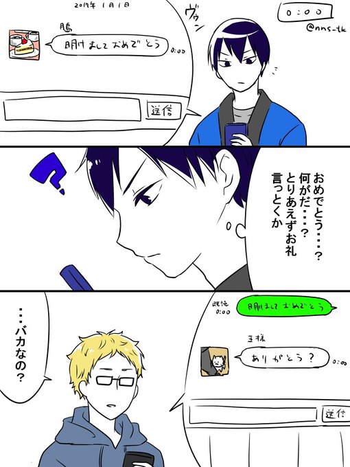 @nns_tk セリフを使って1コマ漫画が気付いたら何故かカラーになってた月影ちゃん😊 文化祭の後的な。眼鏡無しがよかったのでツッキーの眼鏡はログアウトしてます