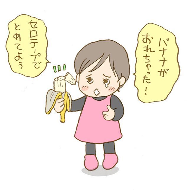 バナナを自分でむきたいお年頃。誤って折ってしまうと「折れてないのと換えて」と言って来ます。 それには応じられないわと応えたら、この譲歩案を出してきました。 #育児絵日記 #子育てイラスト #2歳 #育児漫画 #育児 #子供 #女の子 https://t.co/Huhts1qivp