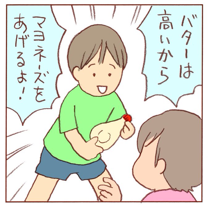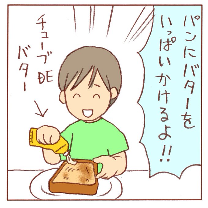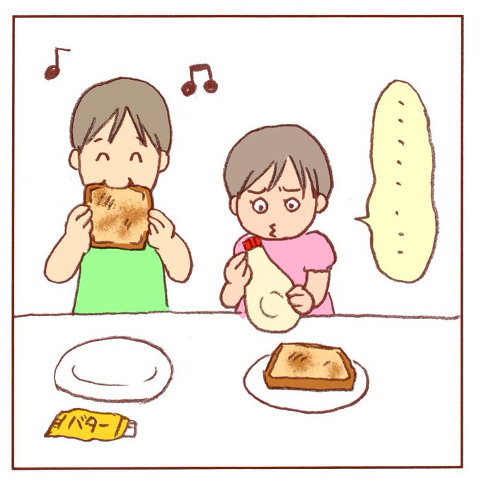 バターは貴重です? #育児絵日記 #子育てイラスト #6歳 #3歳 #育児漫画 #育児 #子供 #男の子 #女の子