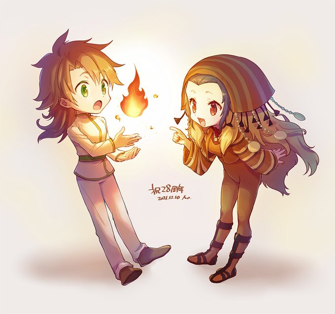 3周年おめでとうございます。お祝い絵は意外なタイミングで新SSが実装された二人で!幻闘場や螺旋でも活躍してくれて嬉しいです #新ロマサガRS #ロマサガRS祝3周年