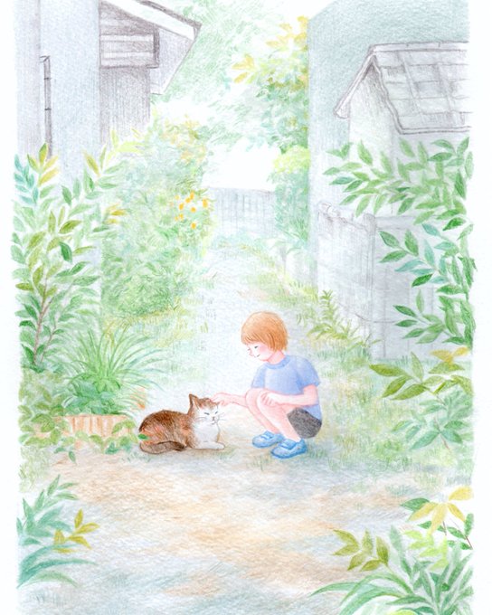 路地裏の猫 #色鉛筆