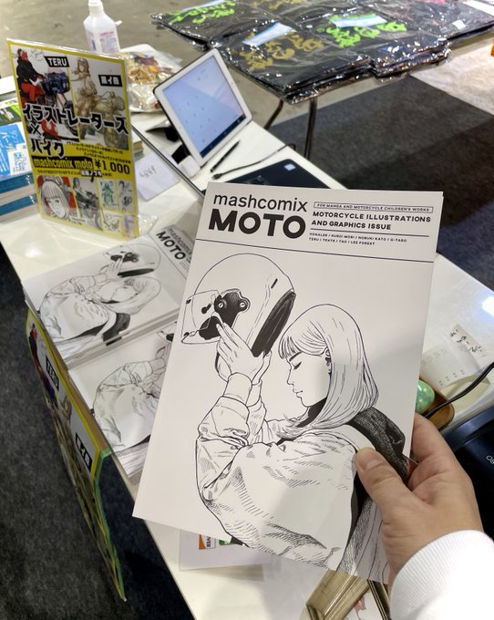 昨年のモーターサイクルショーで販売したバイクイラスト本「mashcomix MOTO」も少し持っていきます。