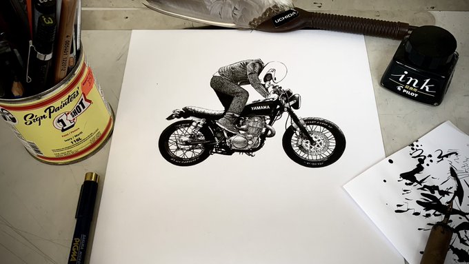 #画像を4枚晒したらrtがきてフォロワーがぶわーって増えると聞いて バイク乗りを魅力的に描きたい。