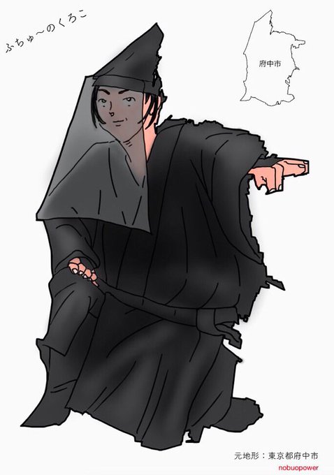 府中市にはめ絵してみた。 ふちゅう〜の黒子さん これが1番の花粉対策か #東京 #府中市 #はめ絵 #地図 #イラスト #黒子 #ダジャレ #花粉ツイートに神対応