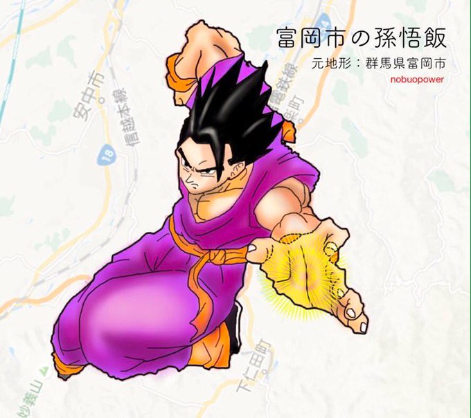 ドラゴンボール地図はめ絵 群馬県富岡市の地形の中に孫悟飯を描いてみる。 #ドラゴンボール超 #ドラゴンボール #アート