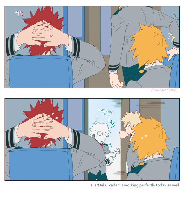 kacchan is saving deku from being eaten by the kotatsu, it was a fierce battle.