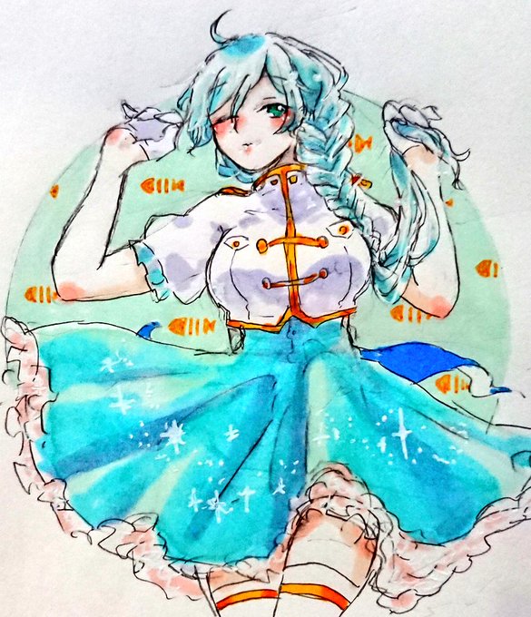 ピンク髪とみずいろ髪で好きに女の子キャラデザしたら~ってフォロワッサンが言ってたのたのしそうだから勝手にやりました。好み全開女たちです😵😊。