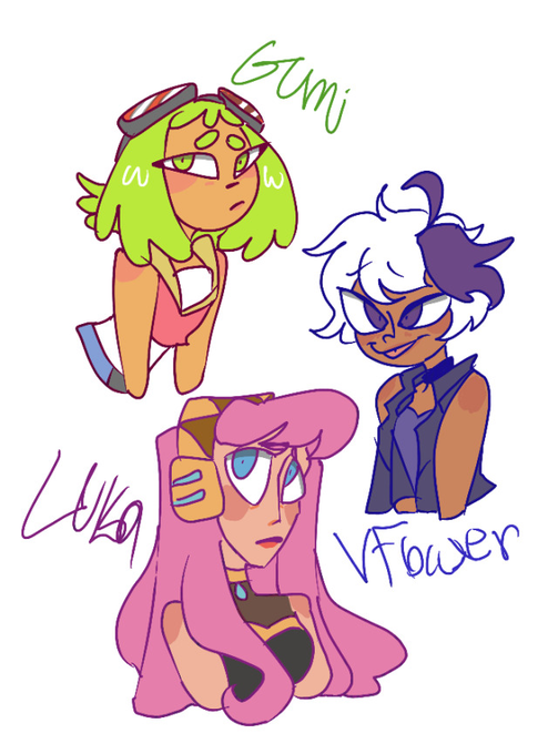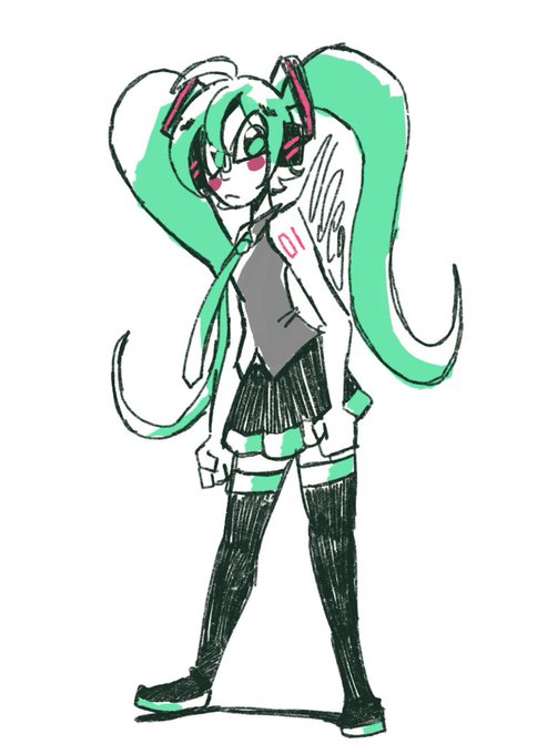 me and @SFlowerbed drew Miku and Lio in our styles
