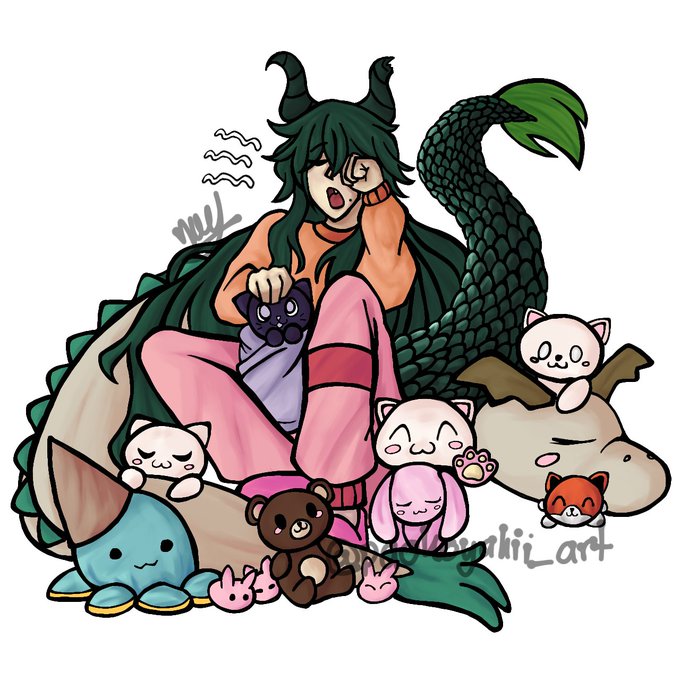 Here is my original character, Dato, an abnormally tired dragon. This was an excuse to draw cute plushes, which was 100% worth it.