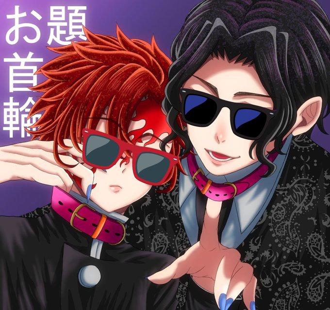 #鬼舞炭版深夜の絵描き文字書き60分一本勝負 #鬼舞炭版深夜の絵描き文字書き延長戦 お題:首輪 鬼舞炭お互いに所有物だとわかるように首輪をつけあいっこしてくれ~~~~~~