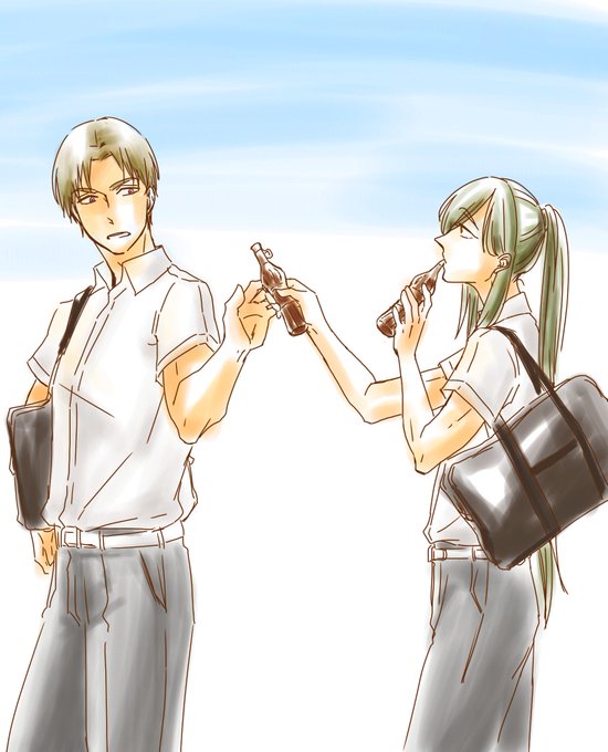 青江くん半袖シャツてもう男子高校生だから長谷部くんも同級生ね。一緒に帰ってコンビニ寄ってアイス食べよ。現パロ?へしかり