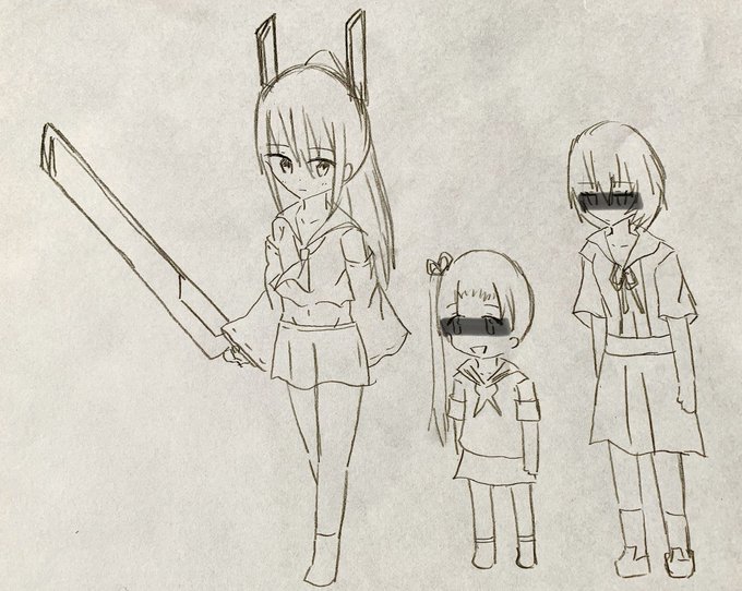 うろ覚えのままKAN-SEN描いてみた。 1.綾波 最初にお迎えした子だけど…艦○れの初期艦に引っ張られてる気がする。どっかの脇巫女にも似ちゃったな。 デカい刀は急遽付け足した。 #アズールレーン