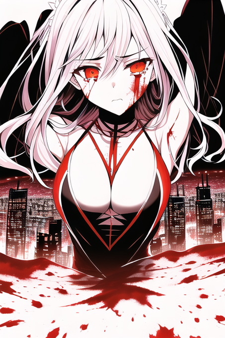 今後の課題になりそうな生成物ふたつ。 詠唱はaltに。 scaleを20まで上げて生成し続けてたら、あら不思議。 胸が透けて背景が映ってる。 どのタグが悪さをしてるんだか全く解らない。 光と血の合成は成功してて、光オンリーの部分が透けた感じがするけれど、どうなんだこれ。 #NovelAI #AIイラスト