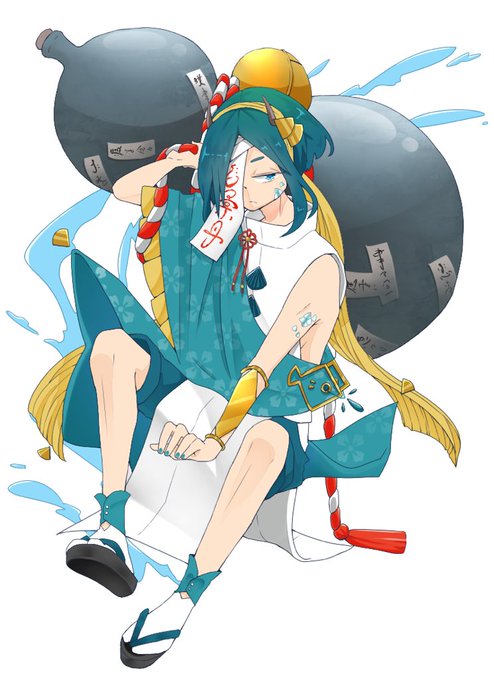 魚をイメージしたキャラデザ。武器はなんでも吸い込む瓢箪。瓢箪に貼られてる札は吸い込まれた者の本名で、これを剥がさない限り出られない。彼への対処法は、本名を絶対に知られるな。