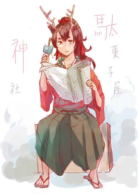 うちの子。鹿君。駄菓子屋の主人(神様)
