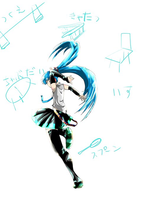 机とか脚立とか盛大かつカオスに飛ばしたい(仮)、#三点透視 使って。 #初音ミク