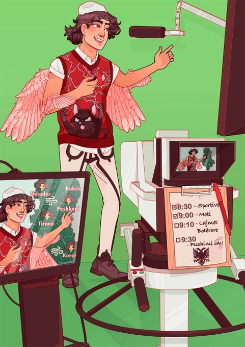 D is for Drangùe - they are semi-human divine winged creatures from Albania. They protect mankind from natural disasters, so make amazing weather reporters⛈️☔️ ⛈️☔️#ModernMonsters #Illustration #Albanian #WeatherReport