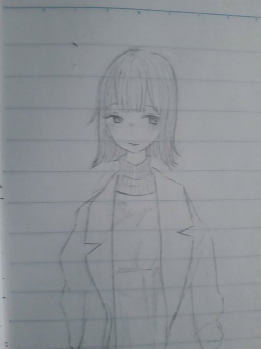 久しぶりにちゃんとお絵かきした! 背景は前に描いたやつだけど笑 最近、外はねの髪型にハマってる😊