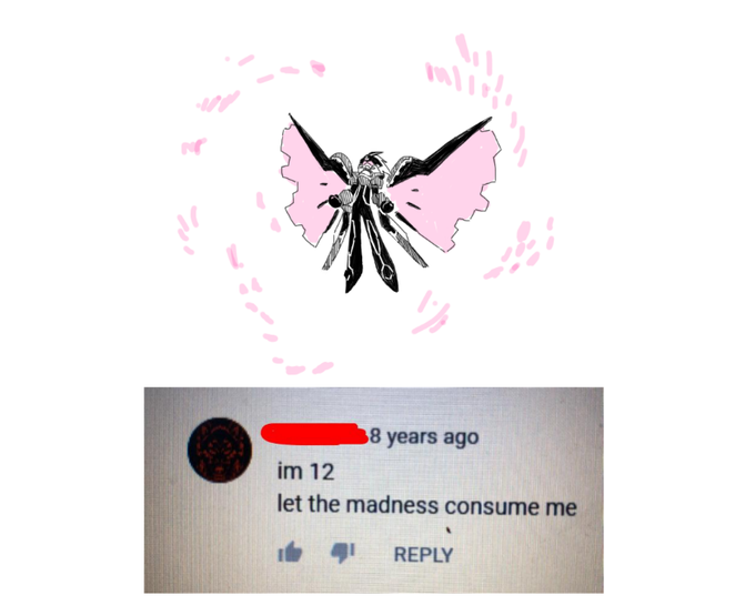 drawing my daemon x machina character lead to drawing memes which in turn lead to drawing crossover memes with my 'make a character' game ocs