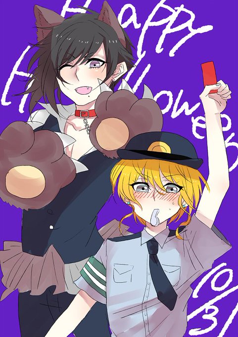 @nonnon1015 HappyHalloween(震え声) カルニャ「なんで女性の制服なんですか!?」 樹「そっちのほうが似合うわよ~♪」