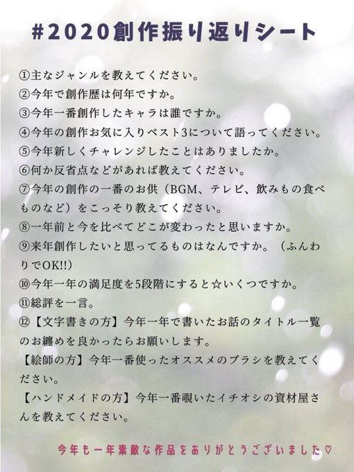 #2020創作振り返りシート 使わせていただきました!! たのし〜〜〜!🥰