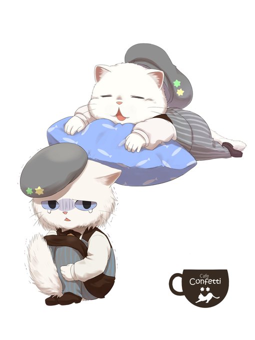 自分の美しさと世界から愛されていることを疑わないポジティブナルシ猫。Confettiの売り上げツートップの一匹。ファンは多いがカフェの女子の視線は冷たい(でも愛されていると思ってる)す
